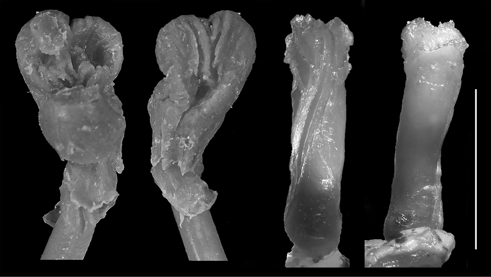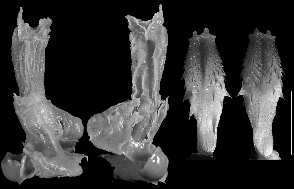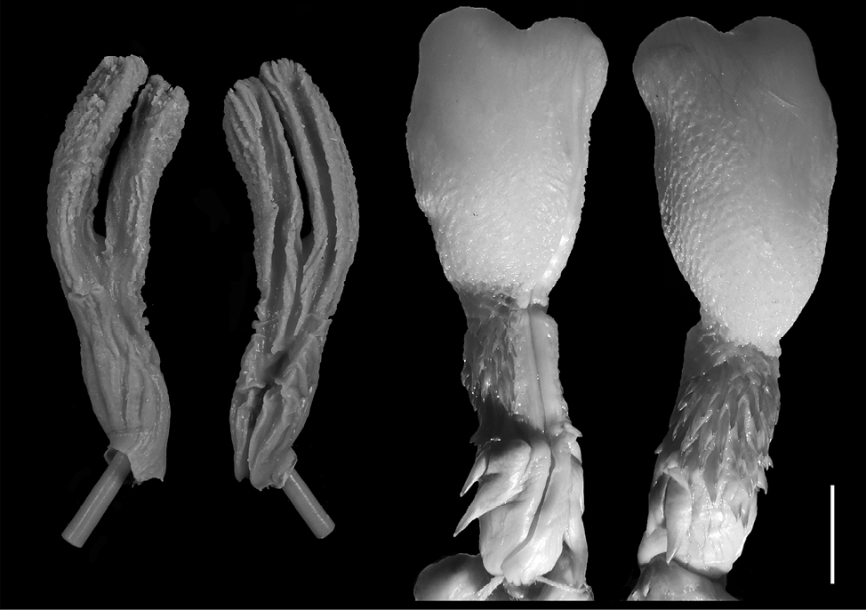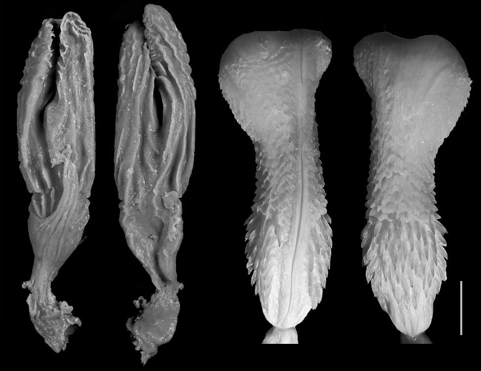 Female genitalia have been described mainly in situ after dissection of certain individuals with very few exceptions (Granados et al., 2022), while male hemipenes are usually described in their everted and inflated state. Such two-dimensional observation of female genitalia restricts the potential for further investigation of copulatory adjustment of male and female genitalia. We believe that using a better methodology for female snake genitalia preparation and their respective description, with a three-dimensional (3D) view of the organs following Granados et al. (2022), is necessary for a proper comparison to the common hemipenial descriptions, so further analyses for potential copulatory adjustments could be performed. Similar methodology for three-dimensional genitalia models has been used not only for snakes, but also for caimans (Moore et al., 2022), and marine mammals (Orbach et al., 2018; 2021).