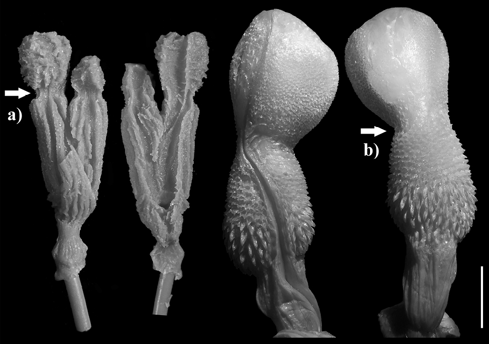 Closely related taxa often exhibit morphologically distinctive genitalia (Arnqvist, 1998; Gredler et al., 2014). Understanding genital diversity has long been an object of functional morphology and evolutionary research, with most studies focused mainly on male copulatory organs (i.e., Dufour, 1844; Darwin, 1871; Mayr, 1963; Thornhill, 1983; Eberhard, 1985; Shapiro and Porter, 1989; East et al., 1993; Hosken and Stockley, 2004; Cohn, 2011; Gredler et al., 2014; Brennan and Prum, 2015; Langerhans et al., 2016; Brennan, 2022). Since the pioneering work of Dufour (1844), who proposed the lock-and-key mechanism, researchers have concentrated not only on the morphology of male copulatory organs but their evolution as well. However, in the past several decades, the lock-and-key mechanism has been confronted (Eberhard, 1985, 2010; Shapiro and Porter, 1989). A strong argument against the lock-and-key hypothesis is the lack of the supposed female “locks” in many groups (Eberhard 1985; Shapiro and Porter, 1989), and the expected pattern of character displacement in males within zones of sympatry among closely related species is often absent (i.e., Ware and Opell, 1989; Eberhard, 2010). Nevertheless, most of the studies have focused mainly on male copulatory organs, while female genitalia are still heavily understudied (Ah-King et al., 2014), and thus, more studies on female genitalia with various techniques are required.