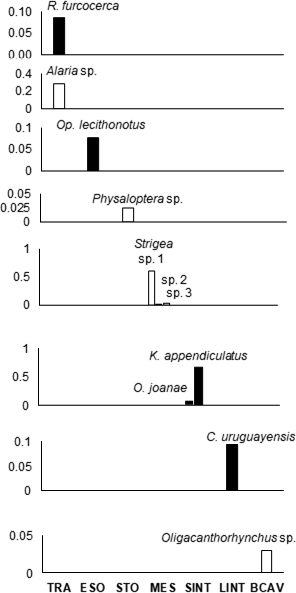 | Oligacanthorhynchus sp. | -0.51 | -0.45 | -0.78 |