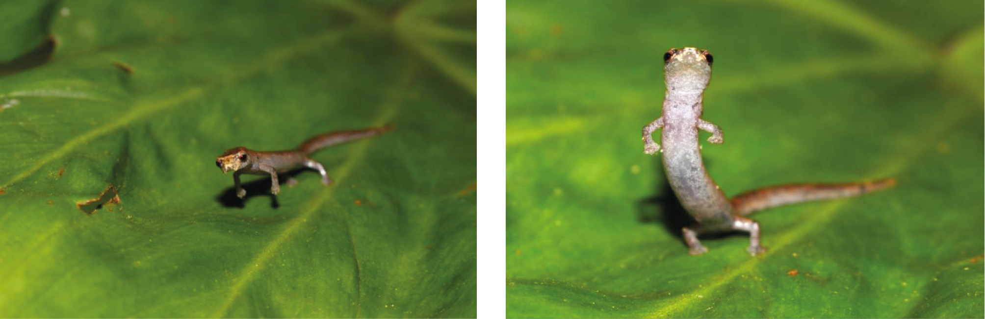 This study documents an antipredator behavior not yet described for Bolitoglossa equatoriana and B. altamazonica in the Amazon rainforest of Ecuador and Peru, respectively. The Ecuadorian climbing salamander, Bolitoglossa equatoriana (Brame and Wake, 1972), is endemic to the western Amazon basin and is found in several provinces of Ecuador, including Napo, Orellana, Pastaza, Sucumbíos and Morona Santiago (Almendáriz et al., 2004). This species is common at night in the eastern forests of Ecuador (Raffaëlli, 2013). On the other hand, B. altamazonica (Cope, 1874) is restricted to just a few localities in Loreto, Peru (Cusi et al., 2020). The behavior of these species remains poorly understood, highlighting the need for natural history observations to be documented.